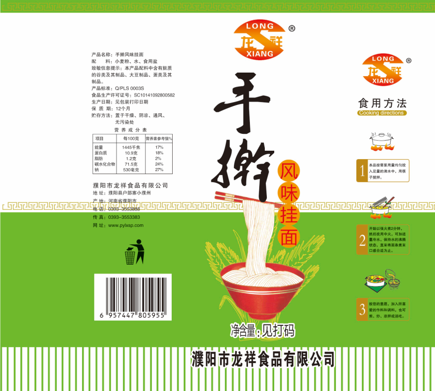 濮陽市龍祥食品有限公司位于河南省濮陽縣戶部寨鎮(zhèn)小濮州,始建于1994年,前期投資200萬元,經(jīng)過幾年的努力,大力開發(fā)市場,由于市場的需求量急劇上升,出現(xiàn)供不應(yīng)求,于2004年擴(kuò)建,建成一座新型的現(xiàn)代化面粉加工企業(yè),并擁有全國先進(jìn)全自動生產(chǎn)設(shè)備一套,產(chǎn)量由以前的100噸/天,提高到現(xiàn)在400噸/天。 2012年再次擴(kuò)大規(guī)模申請為濮陽市龍祥食品有限公司,注冊資金500萬元。2012年又投資800萬元新建掛面生產(chǎn)線一條,日產(chǎn)掛面50噸。龍祥食品有限公司現(xiàn)有職工120余人,總工程師1人,專業(yè)技術(shù)人員10人,經(jīng)濟(jì)師1人,會計(jì)師1人,銷售人員2人,優(yōu)秀專業(yè)人員20余人。 龍祥公司自創(chuàng)建以來,社會效益十分可觀。公司一直以“今天的質(zhì)量,明天的市場”為信念,“一切為了客戶需求,竭誠追求完美品質(zhì)”為企業(yè)宗旨,走專業(yè)化經(jīng)營和職業(yè)化管理的路子。